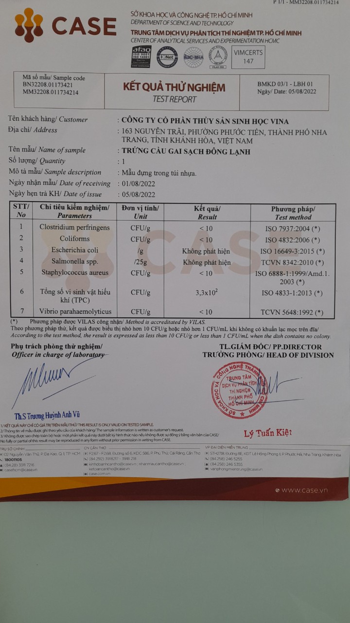 Trứng cầu gai sạch đông lạnh. (Frozen fresh sea urchin uni)