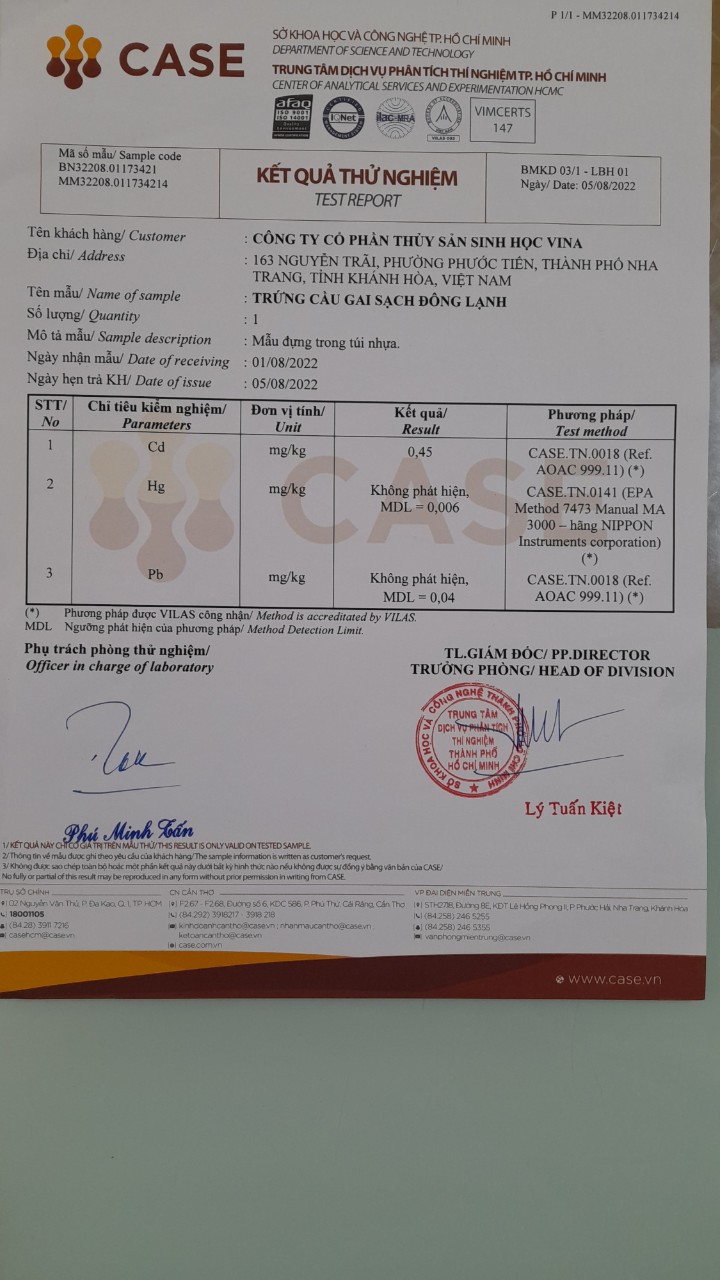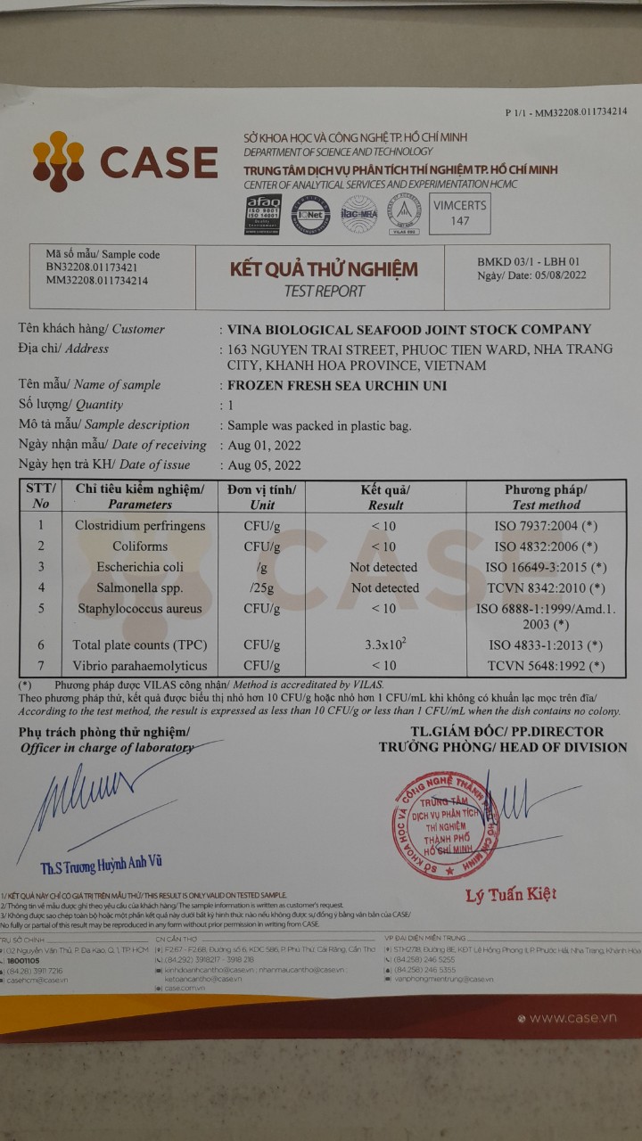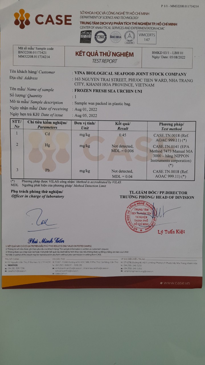 Trứng cầu gai sạch đông lạnh. (Frozen fresh sea urchin uni)